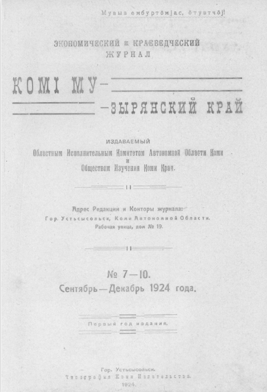 Из сборника «Коми — край далёкий и близкий». Москва, Сыктывкар, 2002.